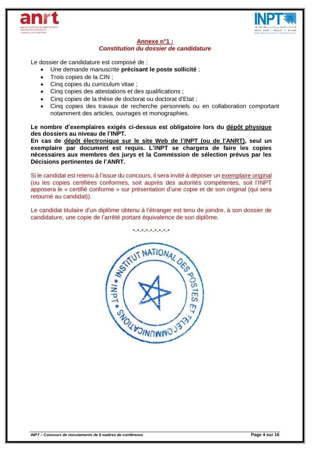 L’Institut National des Postes et Télécommunications (INPT): Concours de Recrutement (8) Maîtres de Conférences