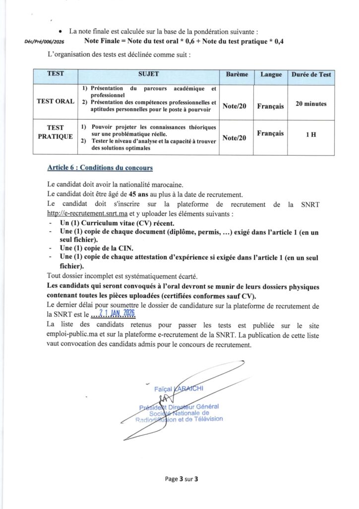 Le dernier délai pour postuler est fixé au 21 Janvier 2026.