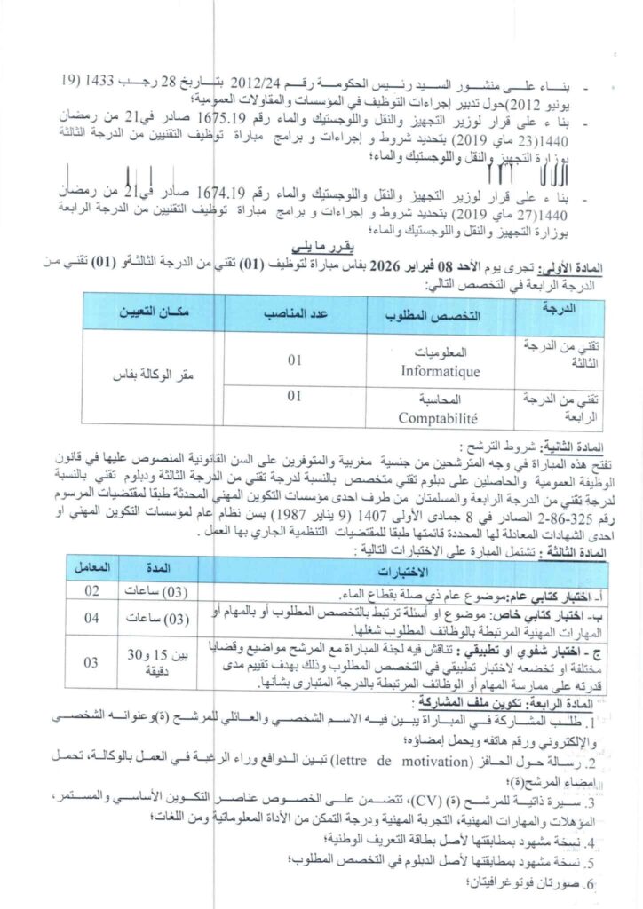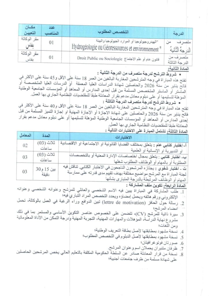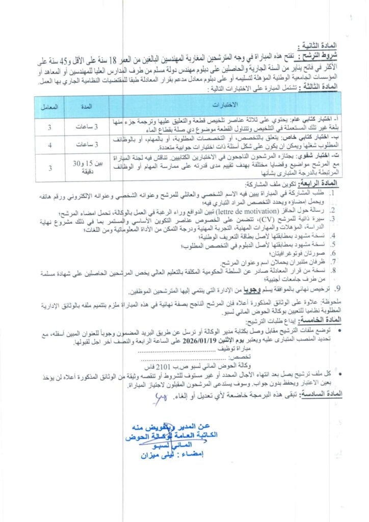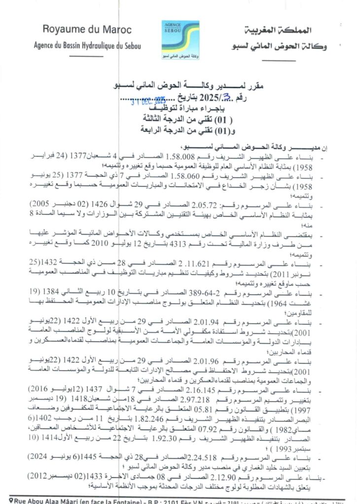 تنظم وكالة الحوض المائي لسبو: مباراة لتوظيف (8) مناصب، آخر أجل 20 يناير 2026