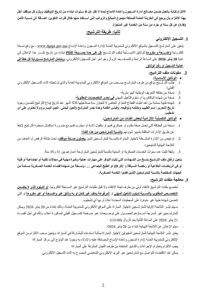 لإعلان عن مباراة إدارة السجون وإعادة الإدماج – مراقب السجون مساعد من الدرجة الثانية، آخر أجل للتسجيل الإلكتروني هو 18 يناير 2026