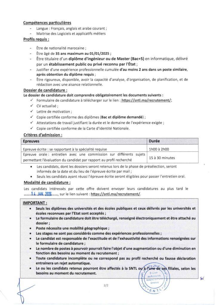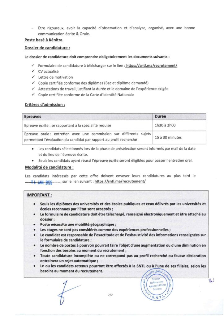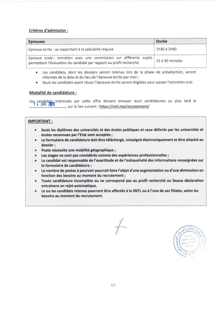 SNTL 2026: Concours de Recrutement (3 Postes)