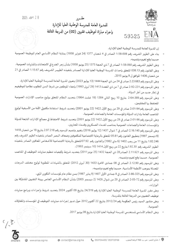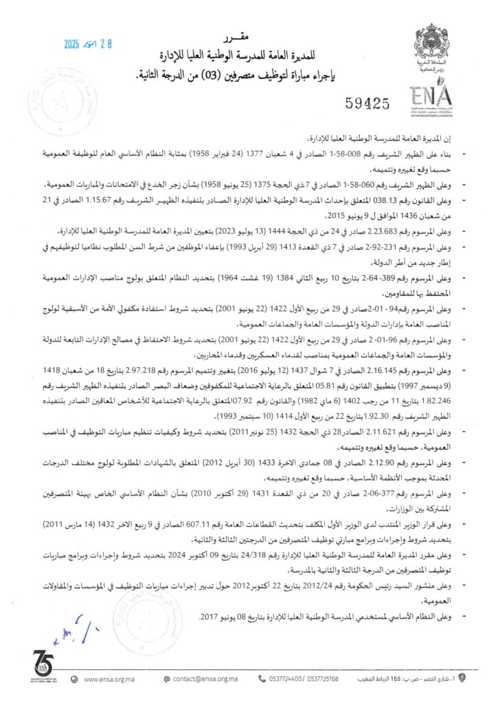 Concours de Recrutement ENSA Administration 2025 (5 Postes)