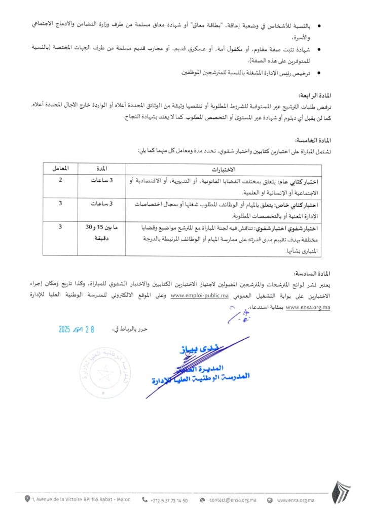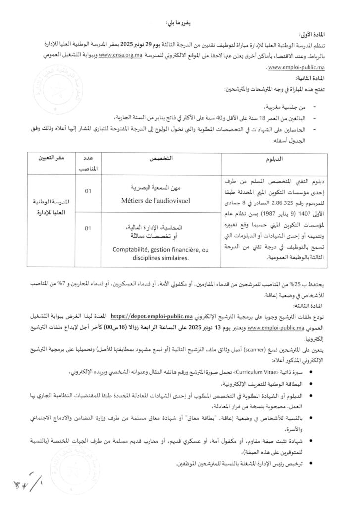 مباراة توظيف 5 مناصب بالمدرسة الوطنية العلیا للإدارة، الترشيح قبل 13 نونبر 2025