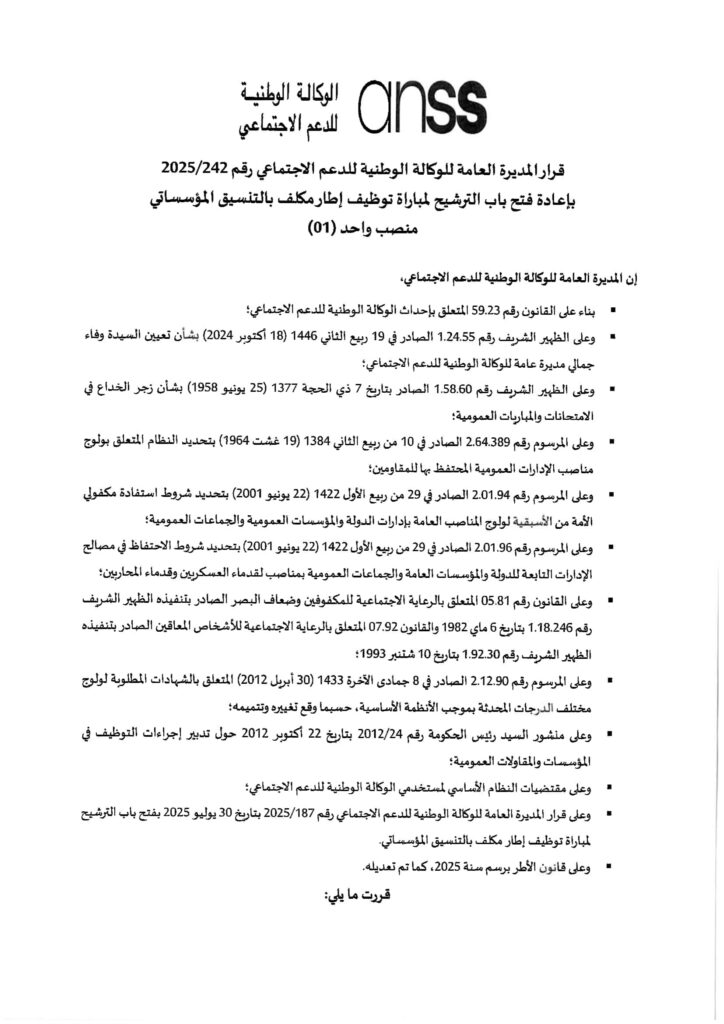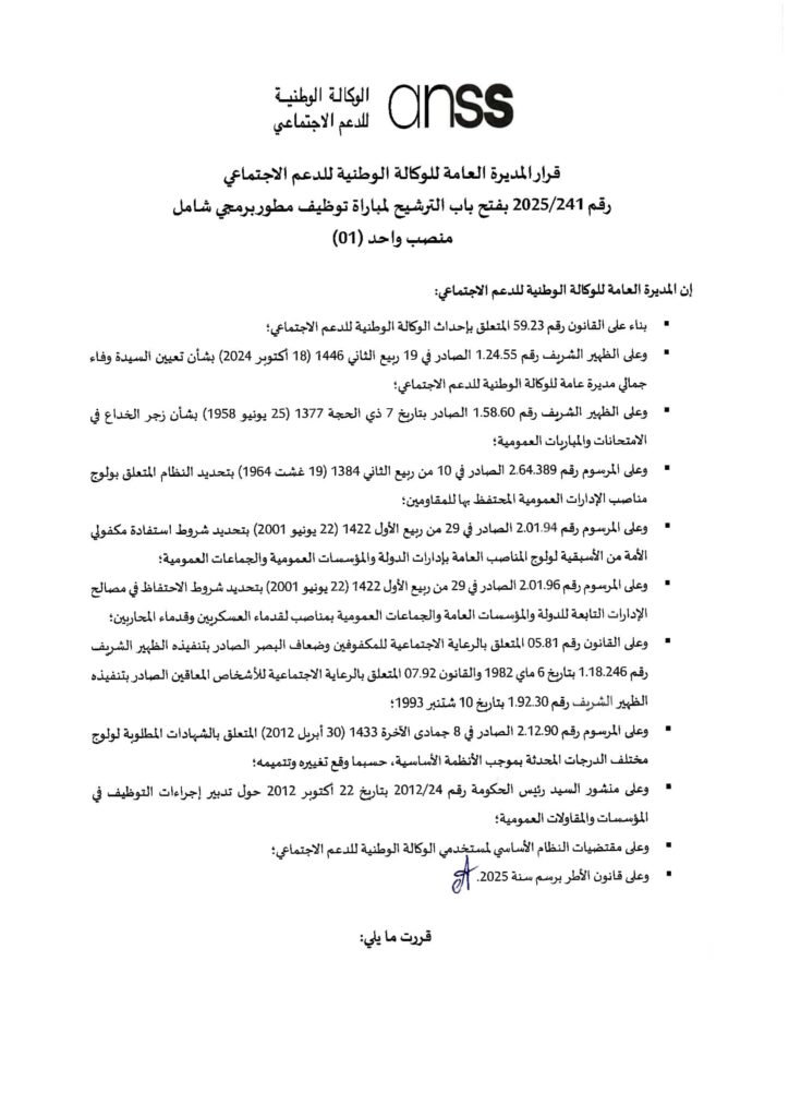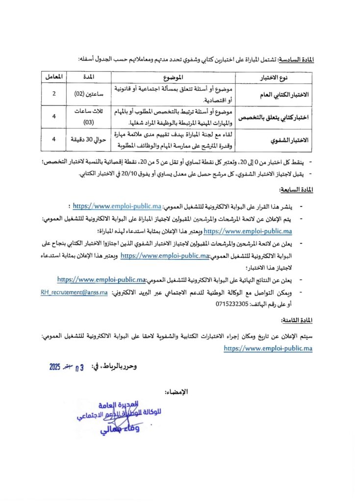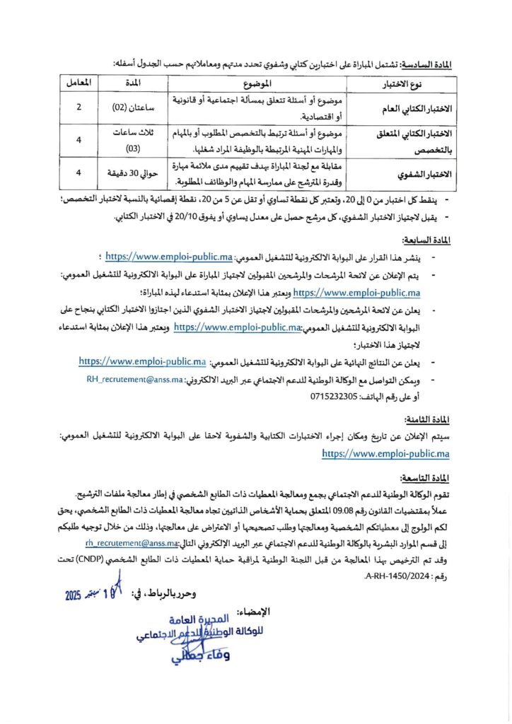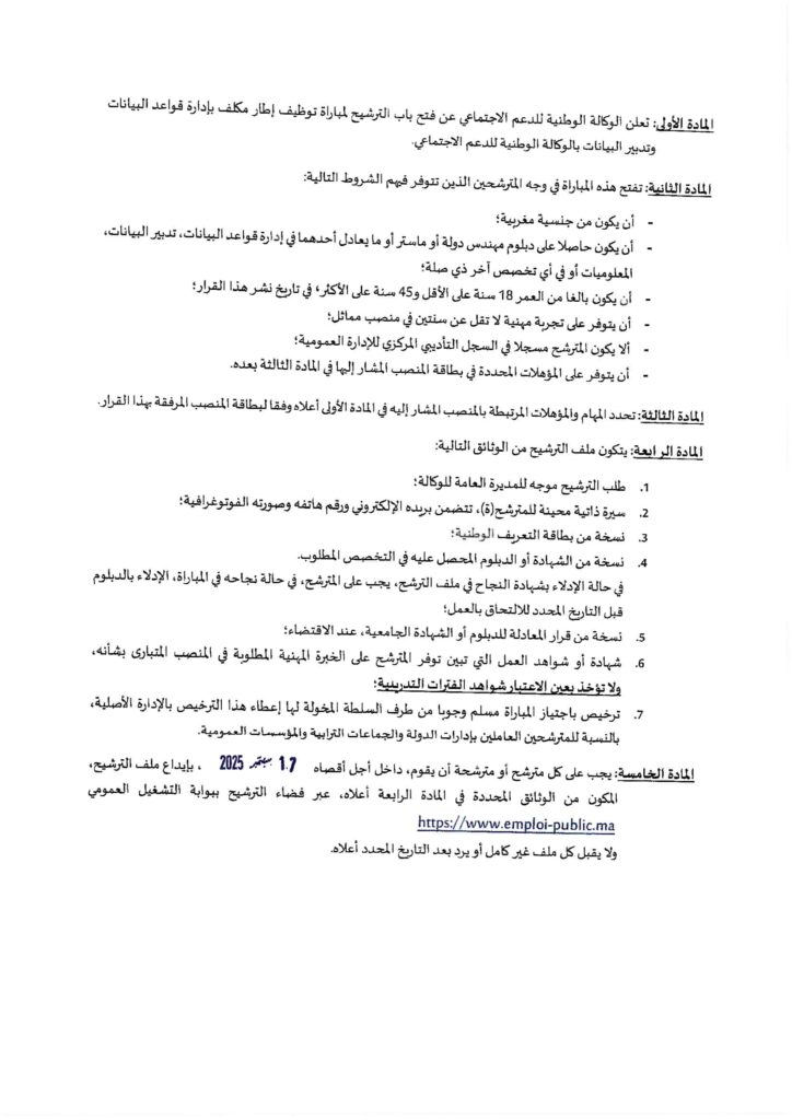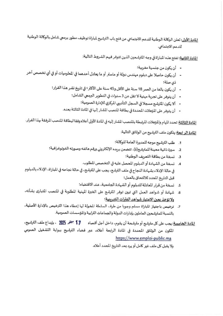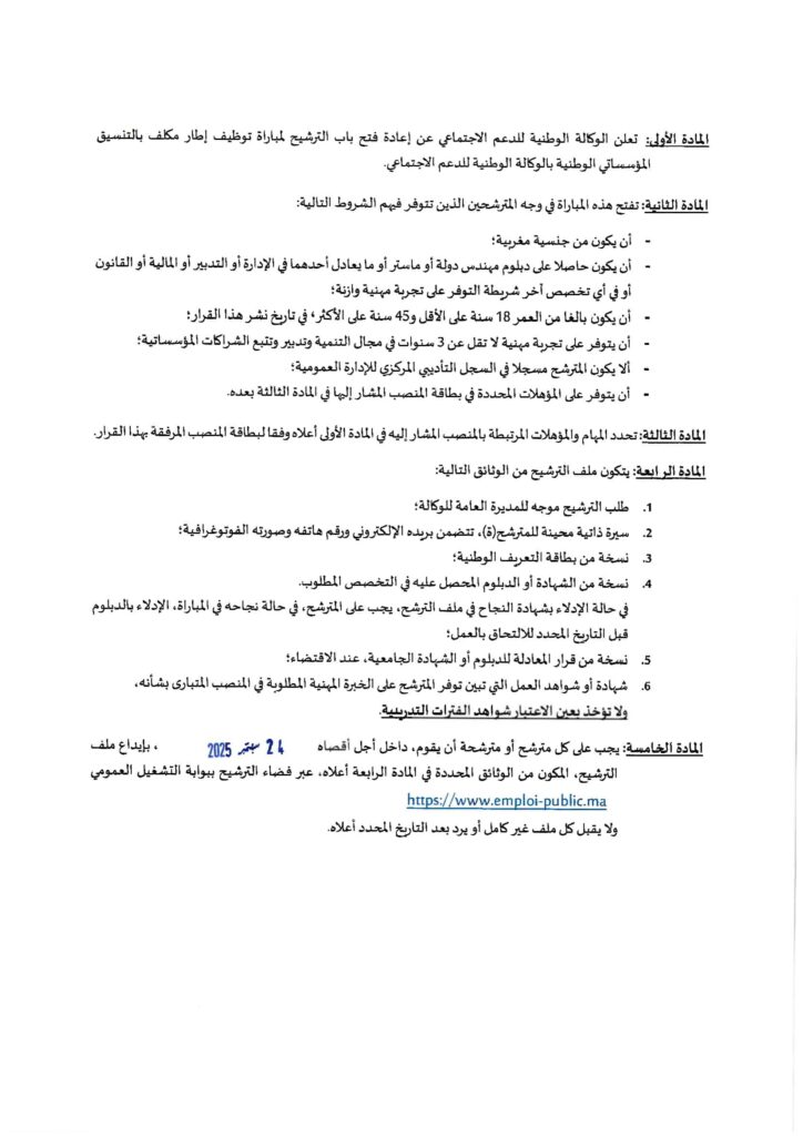 مباراة توظيف 8 مناصب بالوكالة الوطنية للدعم الاجتماعي آخر أجل هو 17 و24 شتنبر 2025