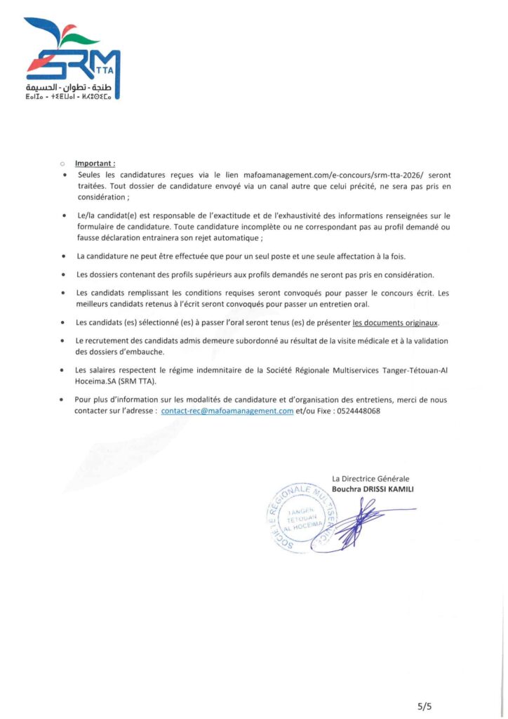 إعلان عن مباراة لتوظيف (166) عون بالشركة الجهوية متعددة الخدمات طنجة-تطوان-الحسيمة، آخر أجل لإيداع الترشيحات 2 فبراير 2026