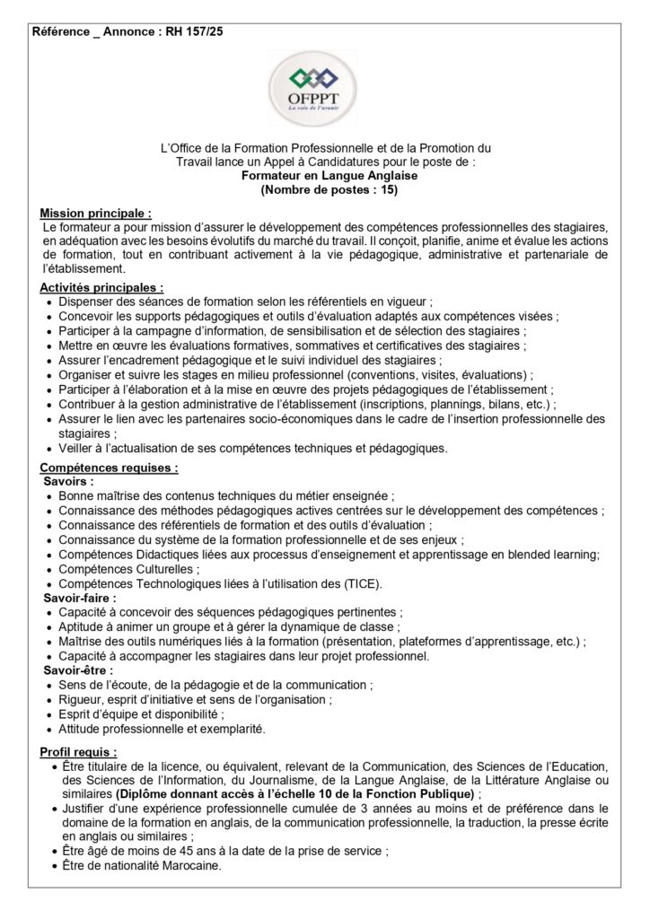 (15) Formateur en Langue Anglaise