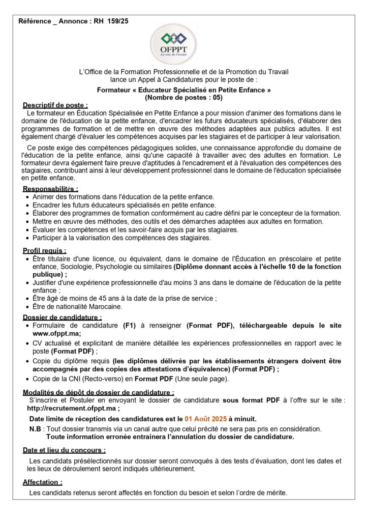 – (05) Formateur “Enducteur Spécialisé en Petite Enfance”.