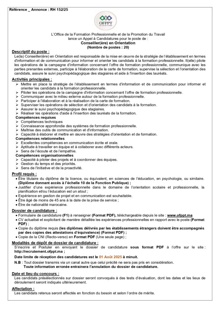 (20) Conseiller(ère) en Orientation et Formation
