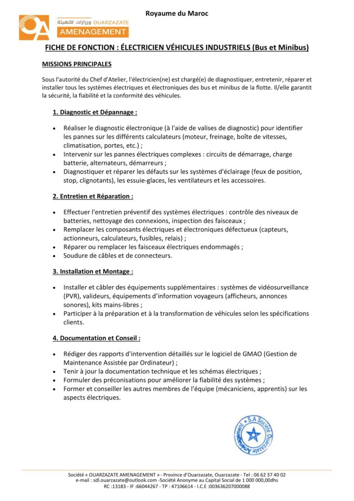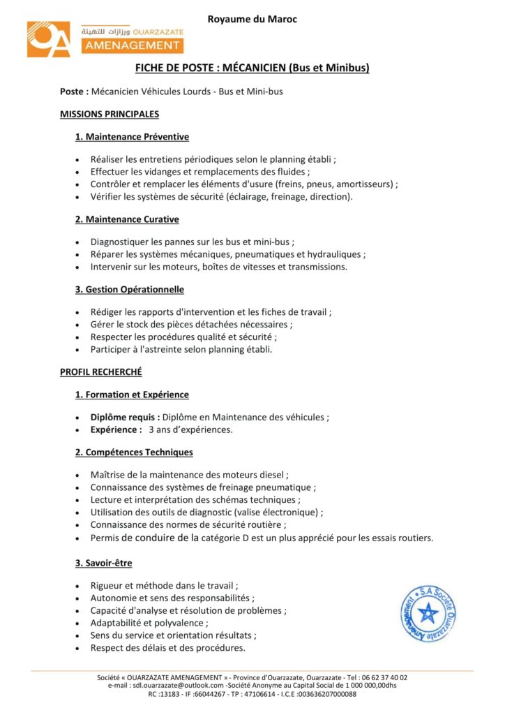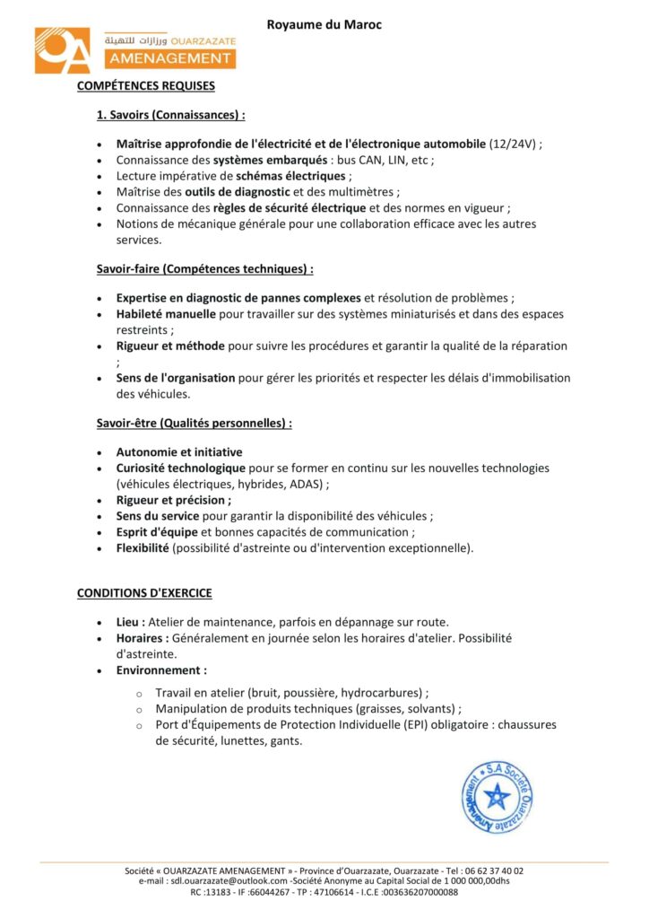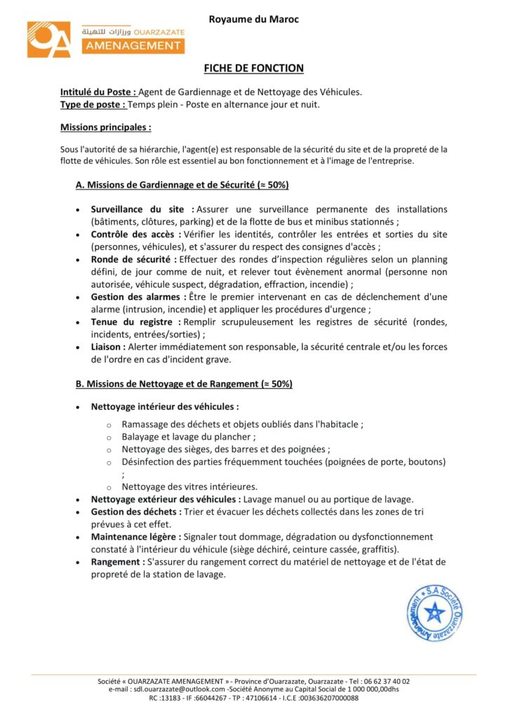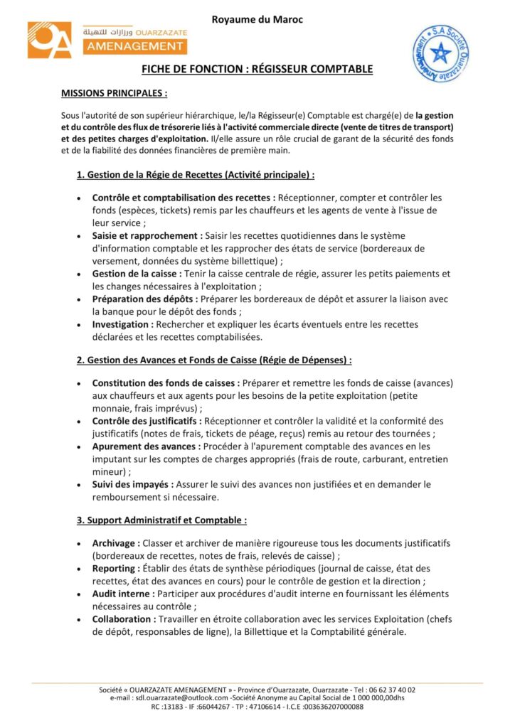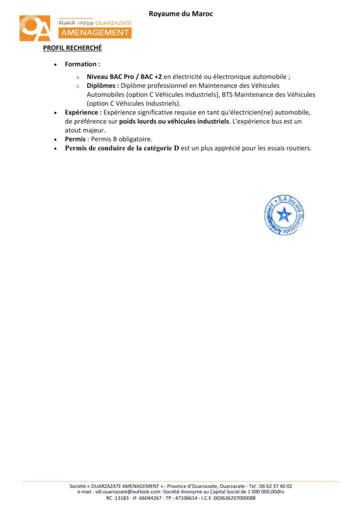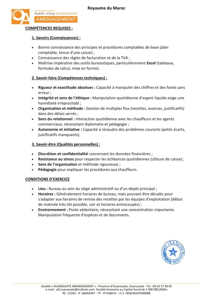 La Société de Développement Local «Ouarzazate Aménagement» organise un concours pour le recrutement de 8 postes répartis comme suit: